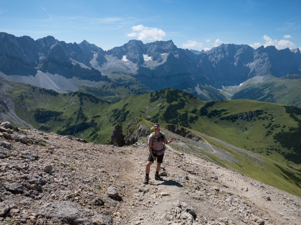 Dass der Ausblick von hier oben fantastisch ist, braucht man eigentlich fast nicht zu erwähnen – direkt hinter uns der Hochglück, östlich der Hochnissl und im Norden das Sonnjoch. Ich musste einfach Flo dazu bringen, dass wir diesen zweiten Gipfel heute auch noch besteigen. Wann sollten wir das denn sonst alles machen?!