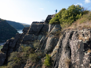 Sie haben uns ein ganz besonderes Schmankerl empfohlen, auf was wir aber auch selbst gekommen wären. Die Felsklippen und der Aussichtspunkt Spitznack sind nicht nur ein Highlight in Sachen Ausblick auf die Rheinschlaufe, Oberwesel flussaufwärts und die Loreley flussabwärts, es macht auch echt Laune, auf den Steinblöcken herumzuspazieren. Flo war das allerdings nicht immer so ganz geheuer.