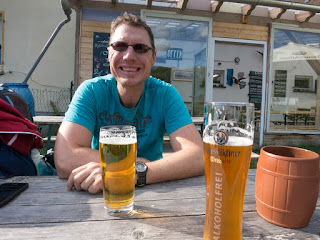 Ein passierendes Pärchen hat sich zwar gewundert, wie man gleich zu Beginn der Tour schon etwas trinken kann, wir haben ihnen aber schnell begreiflich gemacht, dass wir hingegen zu ihnen nicht gerade erst begonnen, sondern schon eine Etappe hinter uns gebracht haben.