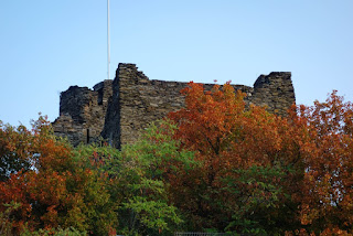 Diese Ruine des ehemaligen Festungsturms gehörte im 14. Jahrhundert zur Stadtmauer und ist nun im Privatbesitz. Von daher kann sie leider auch nicht besichtigt werden. Dafür wird man aber an dieser Stelle mit einem ersten wunderschönen Ausblick auf den Rhein, das Städtchen Lorch und die Ruine Fürstenberg auf der gegenüber liegenden Uferseite entschädigt – ganz besonders, wenn es wie in unserem Fall auch schon ganz leicht zu herbsteln beginnt.