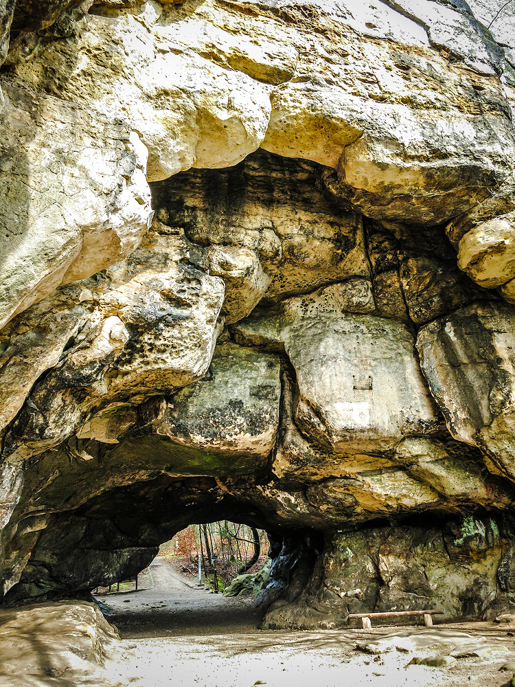 Vom Startpunkt Lichtenhainer Wasserfall, im Kirnitzschtal, war der Kuhstall schnell erreicht, und so standen wir schon bald vor dem imposanten 11 Meter hohen, 17 Meter breiten und 24 Meter tiefen Felsentor – immerhin das zweitgrößte im Elbsandsteingebirge, gleich nach dem berühmten Prebischtor.