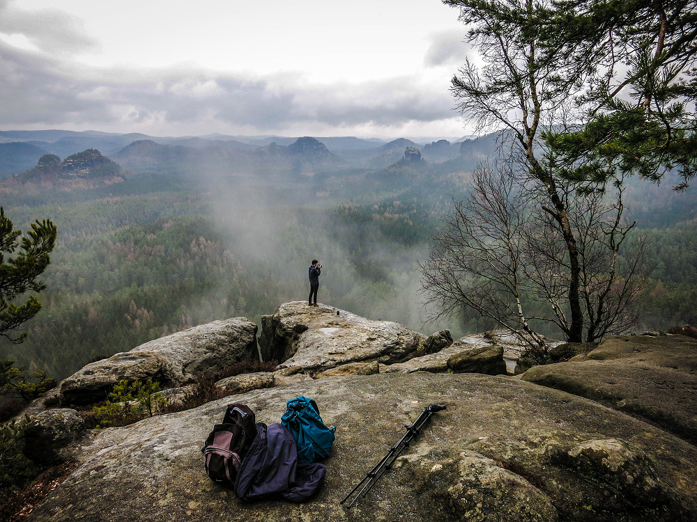 Da es leider noch nicht so ganz aufreißen wollte, war es uns ganz schön kalt, dafür durften wir uns stellenweise fast wie Caspar David Friedrich fühlen – als “Wanderer über dem Nebelmeer”. Allein für so ein Panorama nimmt man es doch gerne auch einmal in Kauf, zu frieren.